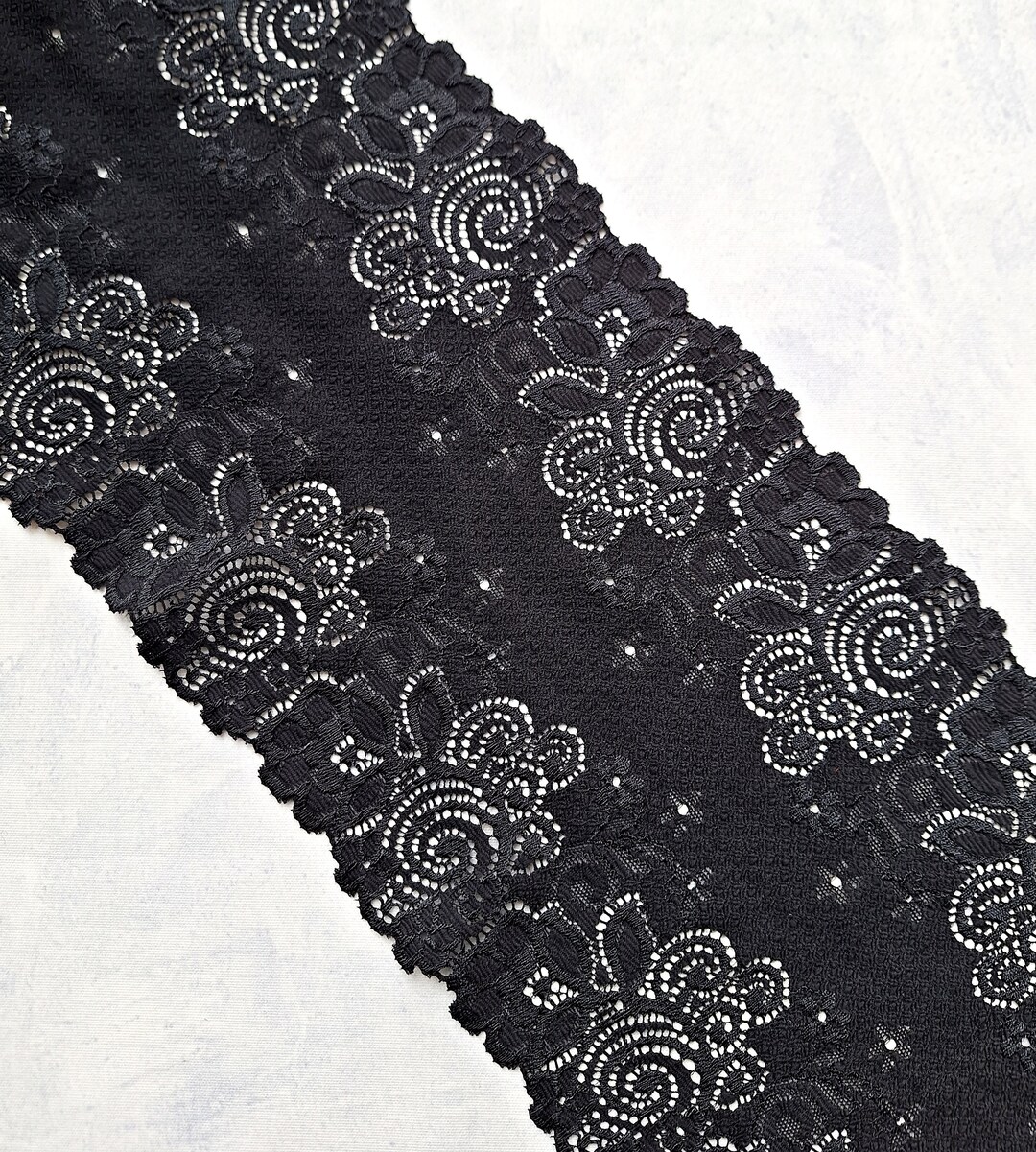 Tag : Black Stretch Lace Floral Elastic Lace Trim Lingerie Lace Width
