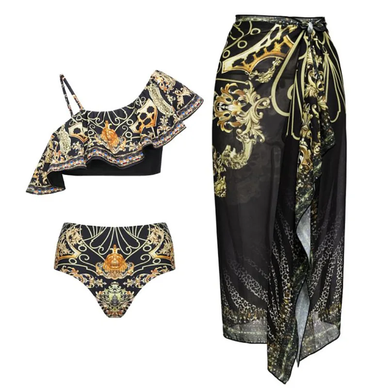 Tag : Black Vintage Bikini Swimwear Ruffled Floral Print Bikinis Swimsuit And Skirt Desiger Bathing