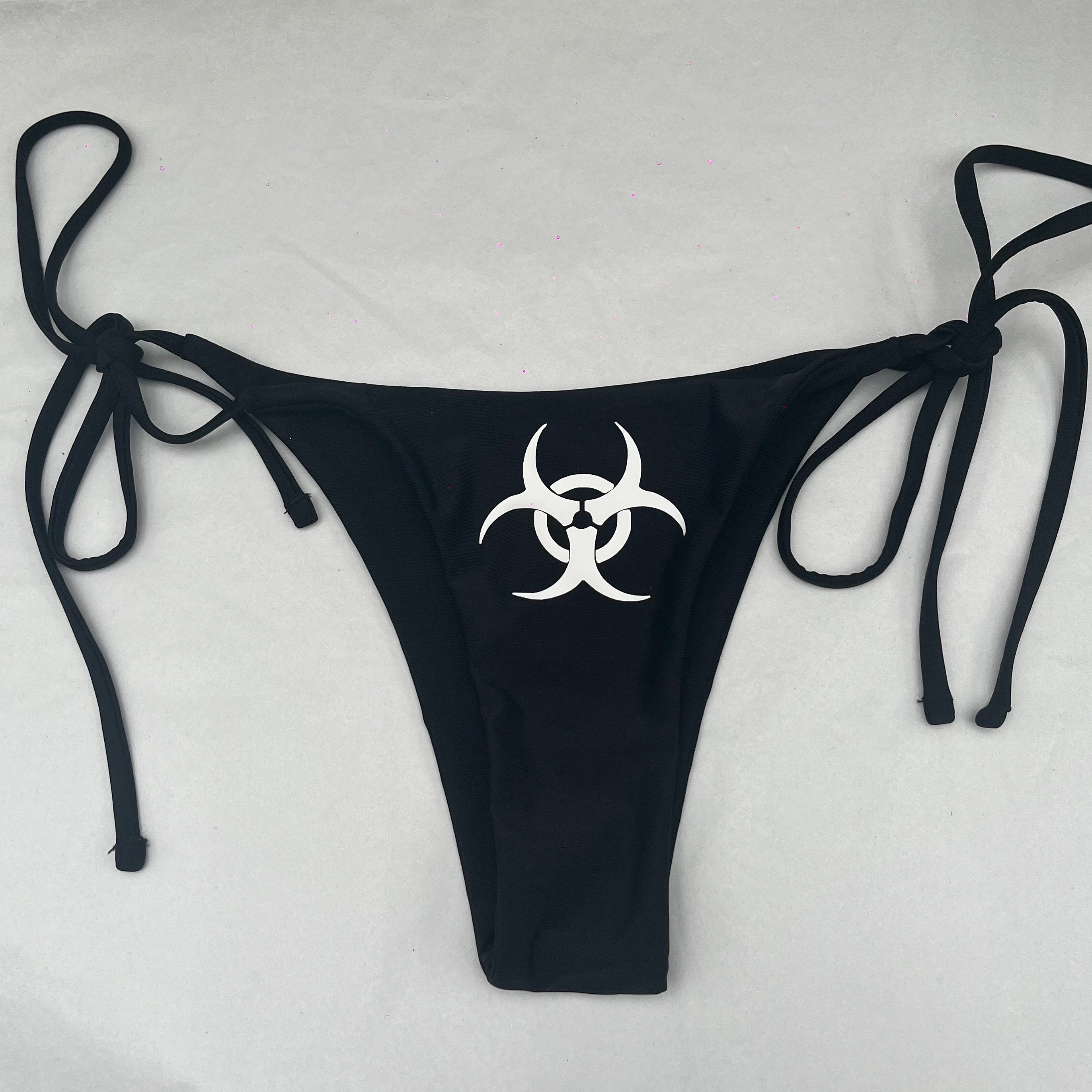 Black Y K Biohazard Bikini Set Halter Top Tie V String Bottoms Womens Etsy is a popular picture for sexy and hot.