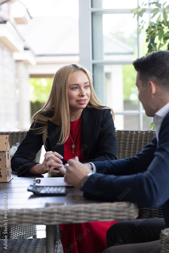 Blonde Estate Agent Shares Available House Variants With Positive Client Realtor Offers Ideal pictures has 500 x 400 · 50 kB · jpeg.