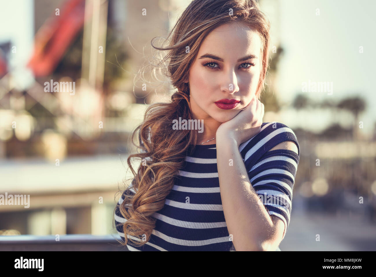 Tag : Blonde Frau Modell Der Mode Im St Dtischen Hintergrund Stehen Sch Ne Junge M Dchen Tragen