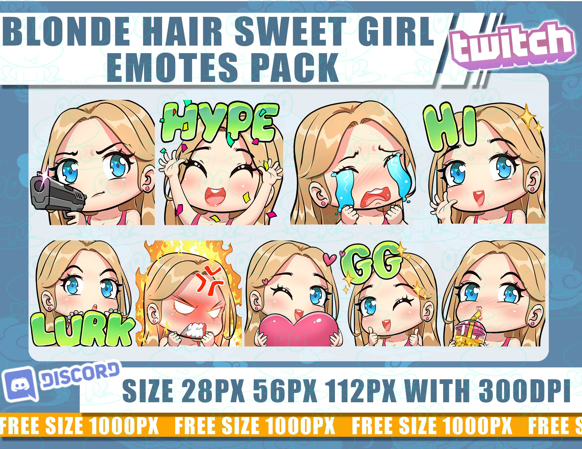 Tag : Blonde Hair Twitch Emotes Girl Emotes Cute Girl Emotes Emotes Bundle Emote Twitch Chibi