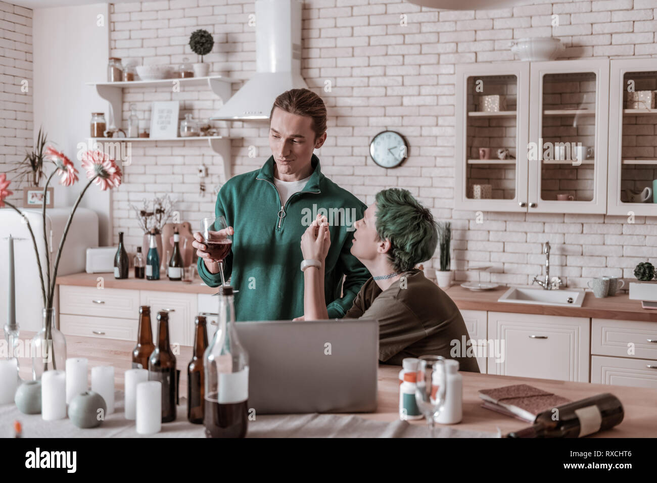 Blonde Haired Husband Taking Wine Away From His Addicted Wife Stock Photo Alamy is a popular picture for sexy and hot.