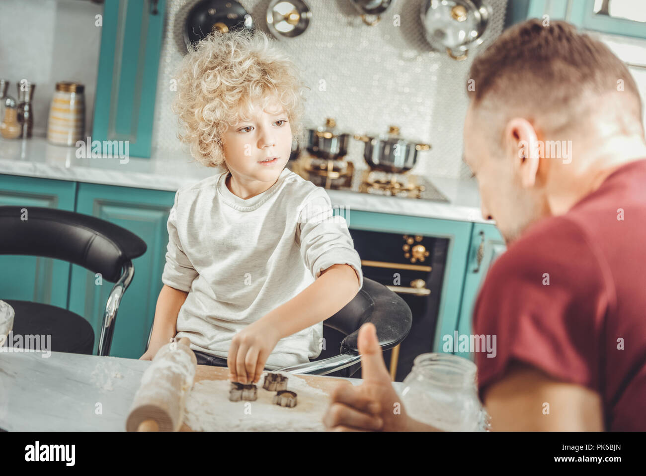 Blonde Haired Son Looking At His Father Cooking Traditional Breakfast Stock Photo Alamy is a popular picture for sexy and hot.