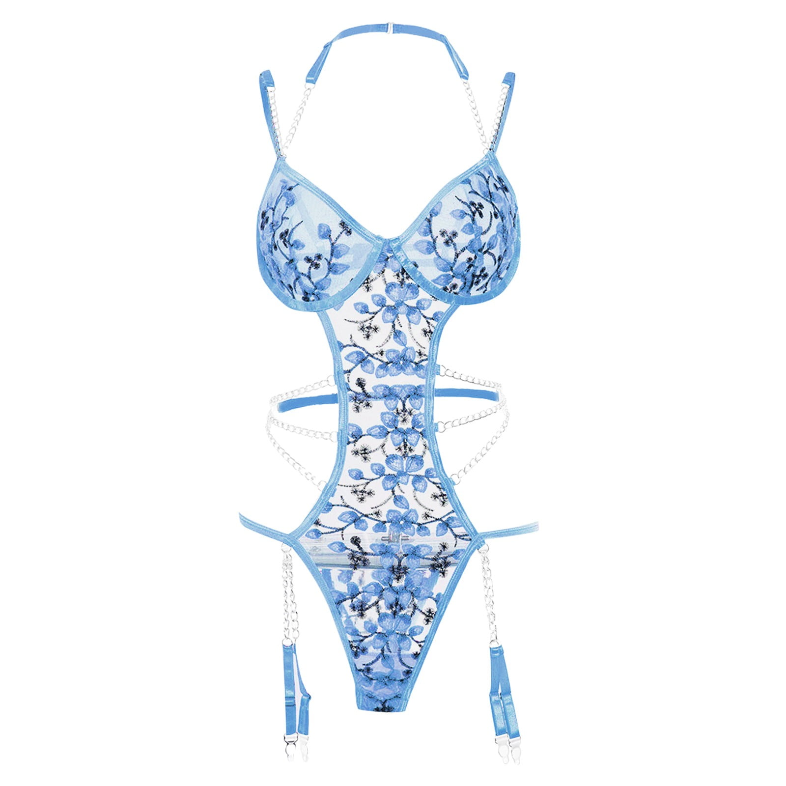 Blue Small Women Lace Mesh Corsets Lingerie For Women Floral Embroidery Chain Linked Lingerie is a popular picture for sexy and hot.