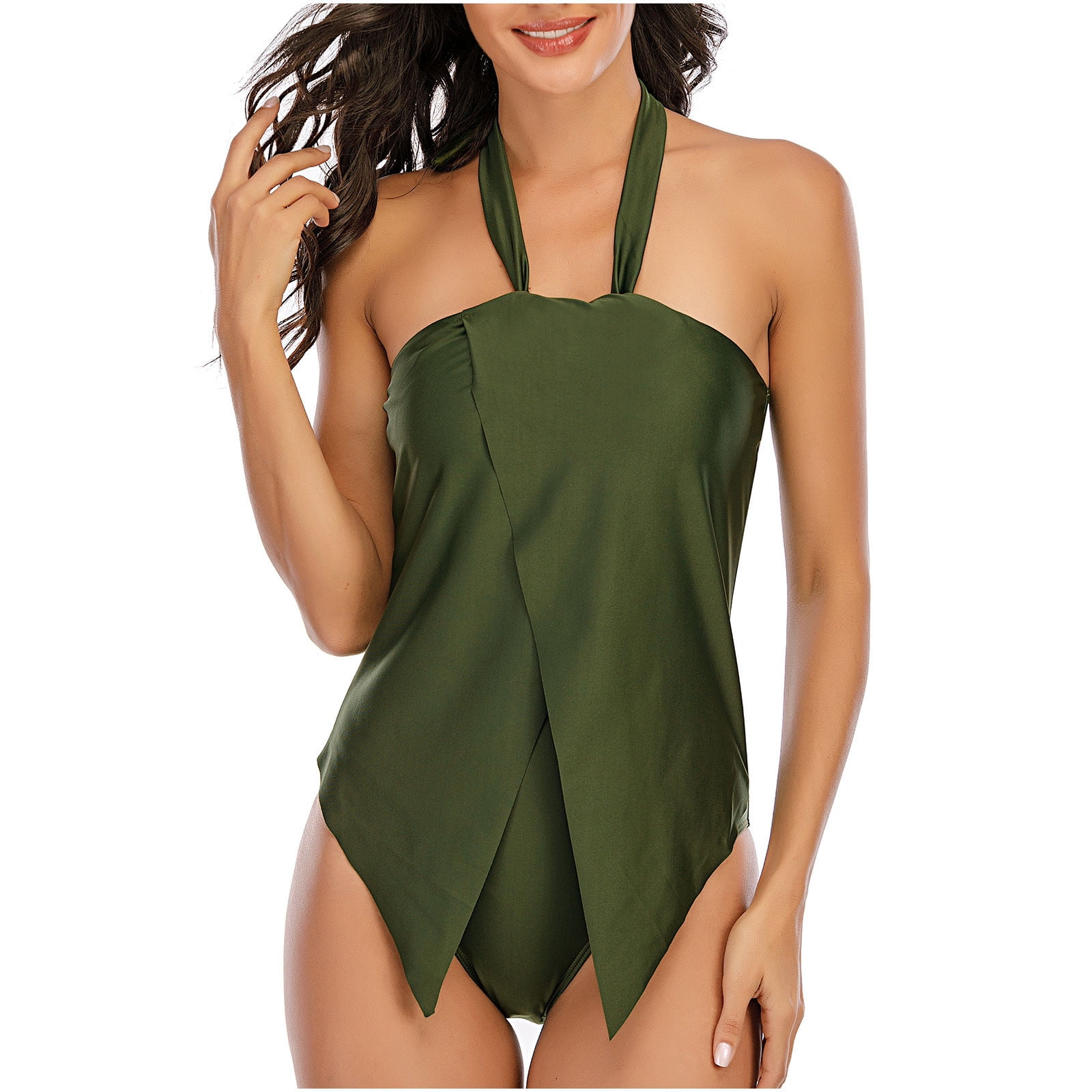Bonixoom Plus Size Swimsuit For Women Halter Elastic Solid One Piece Bikini Summer Swimwears On is a popular picture for sexy and hot.