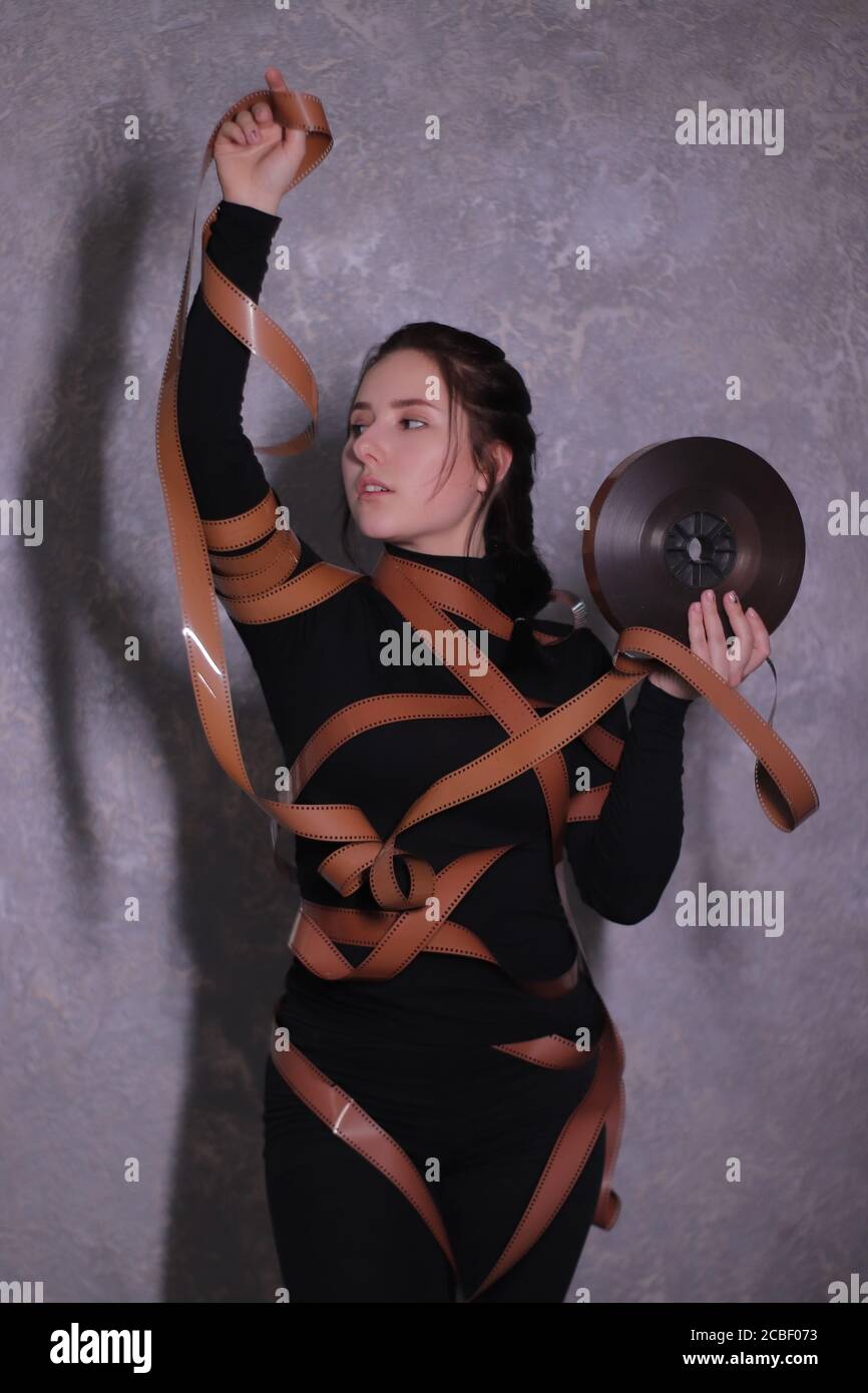 Tag : Brunette Girl Wrapped In A Film Reel Stock Photo Alamy