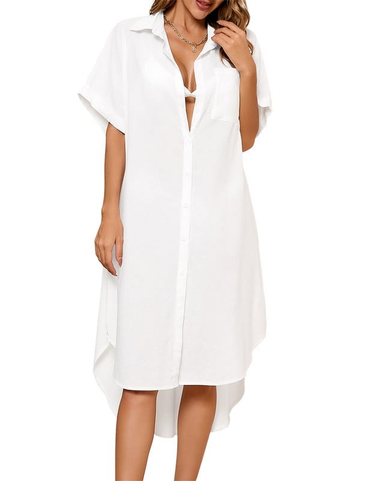 Bsubseach Women Bikini Cover Up Short Sleeve Bathing Suit Coverups White Casual Beachwear 167142