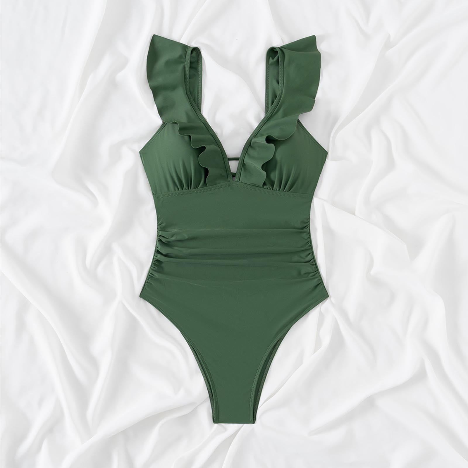Busydd One Piece Swimsuit For Women Pleated Solid Beachwear Tummy Control High Cut Bikini is a popular picture for sexy and hot.