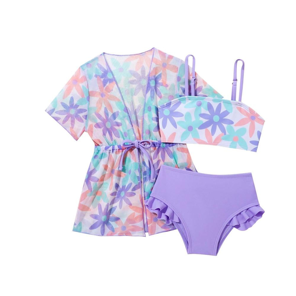 Tag : Bxsruta Girls Bikini Girls Sunscreen Swimsuit Set Flower Printed Short Sleeve Drawstring Waist