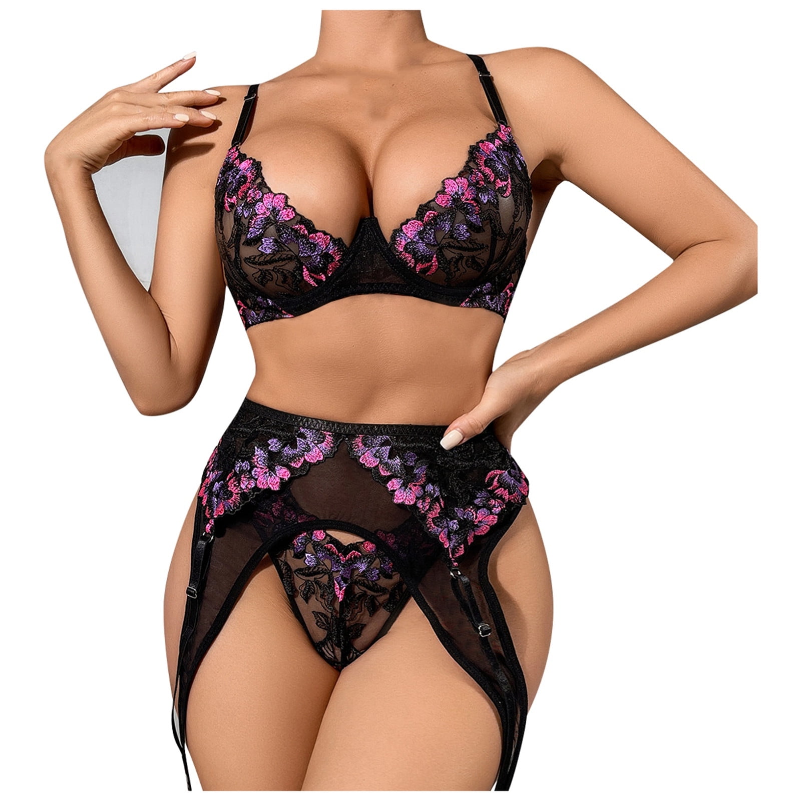 Byhong Bra Set Embroidered Flower Mesh Sexy Lingerie Sheer Panel Seamless Underwire Sexy is a popular picture for sexy and hot.