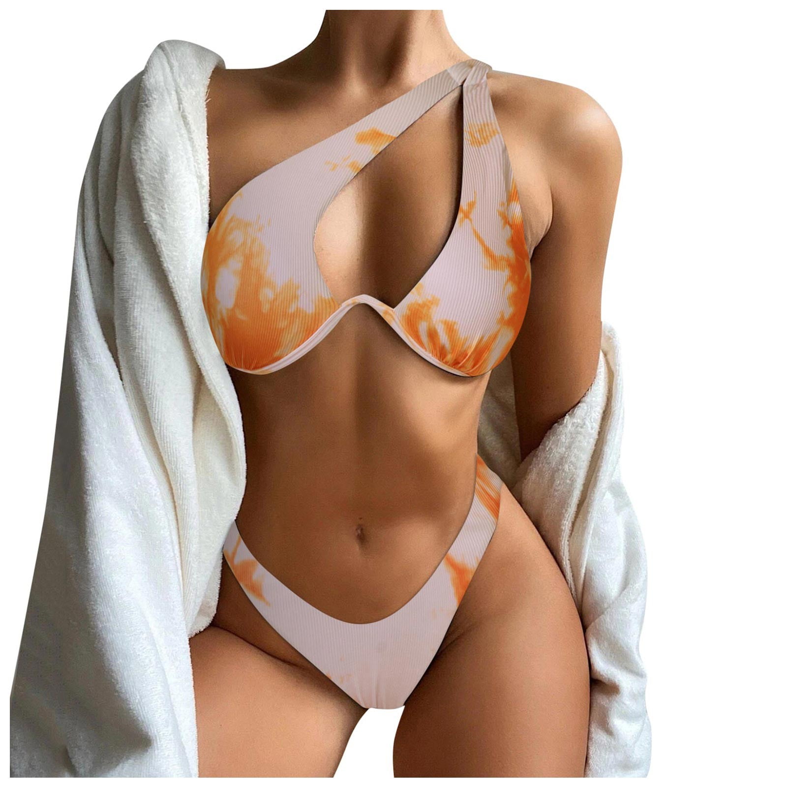 Caivo Bikini Set For Women Swimwear Solid Color V Neck Knot Front Push Up High Leg Thong Pcs is a popular picture for sexy and hot.