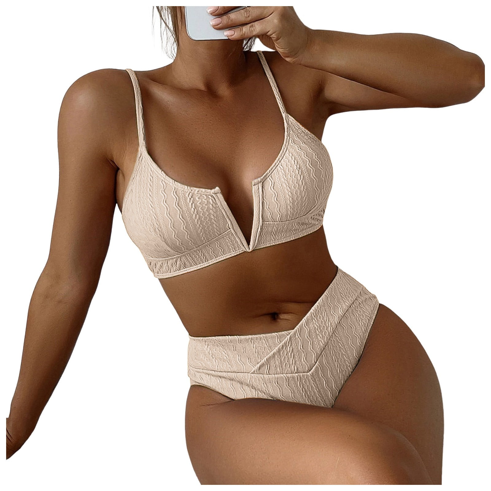 Caivo Women New Split Solid Color Bikini Deep V High Waist Sexy 39438