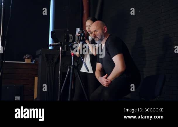 Cameraman Wearing Black Clothes Sits Down Behind The Camera Brunette Woman In White T Shirt pictures has 500 x 400 · 50 kB · jpeg.
