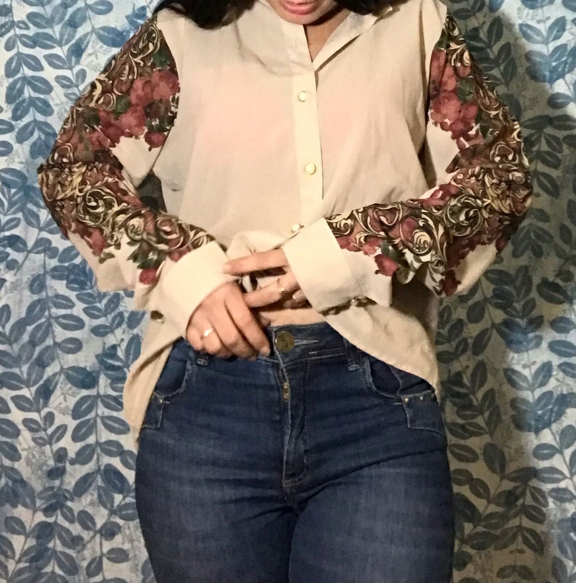 Tag : Camisa Retr Nude Mangas Estampadas Es P Rola Camisa Feminina Autentique Usado