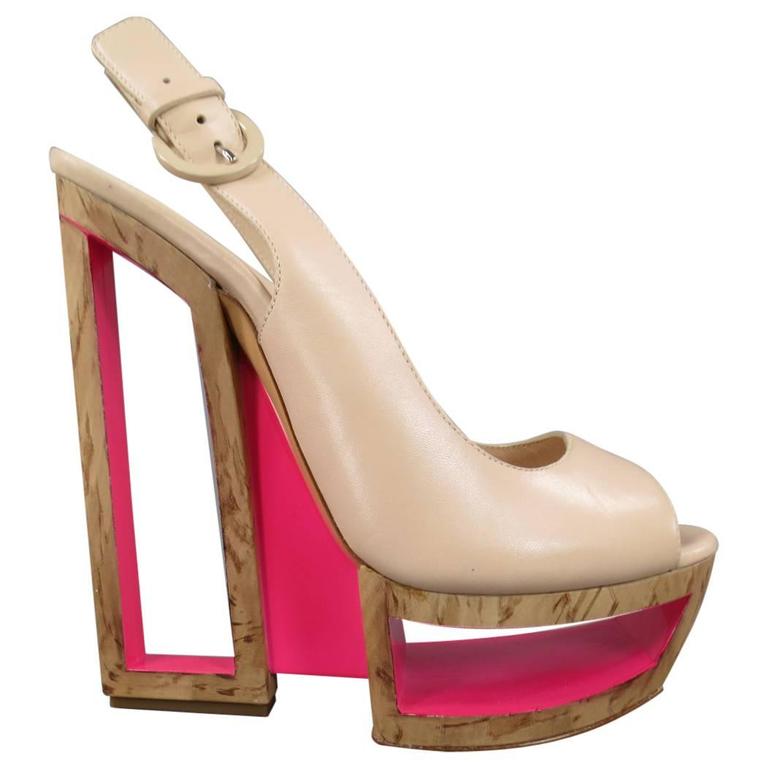 Casadei Size Beige Nude Leather Peep Toe Pink Cutout Platform Wedges At Stdibs 99216