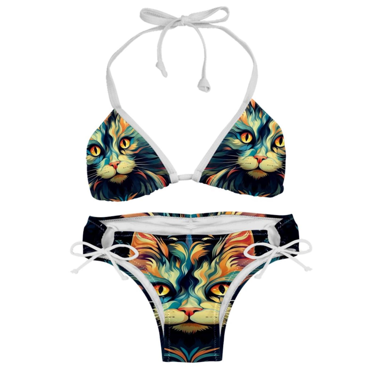 Cat Detachable Sponge Adjustable Strap Bikini Set Two Pack Swim Suits Ideal For Beach And Pool is a popular picture for sexy and hot.