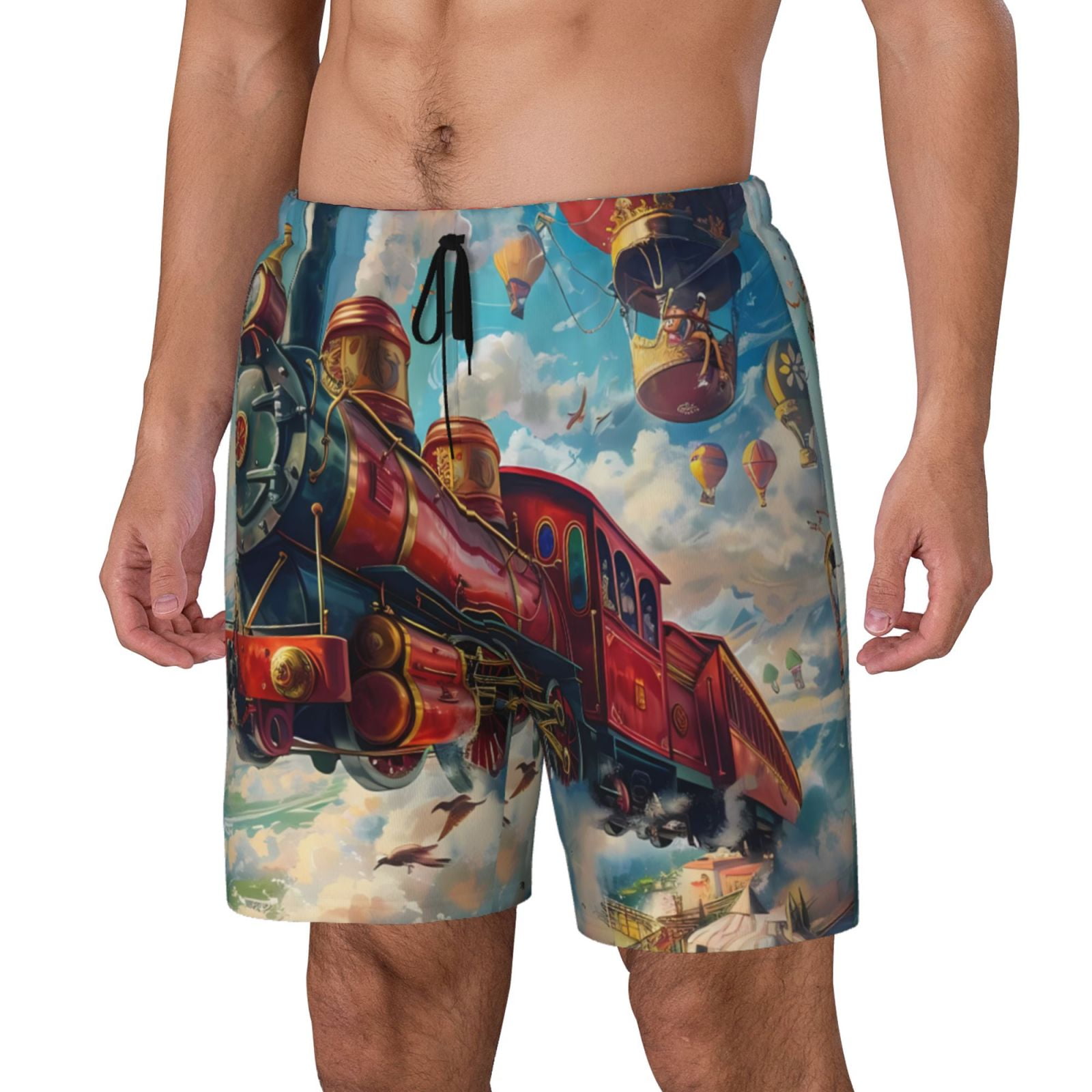 Cauagu Beautiful Red Train Hot Air Balloon Print Mens Swim Trunks Quick Dry Board Shorts Swim is a popular picture for sexy and hot.