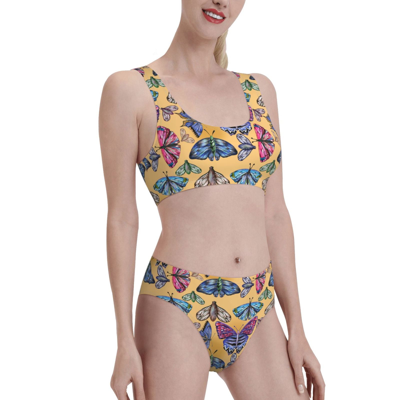 Cauagu Butterfly Print Women S Low Rise Bikini Set Two Piece Sporty Swimsuits Summer Beach is a popular picture for sexy and hot.