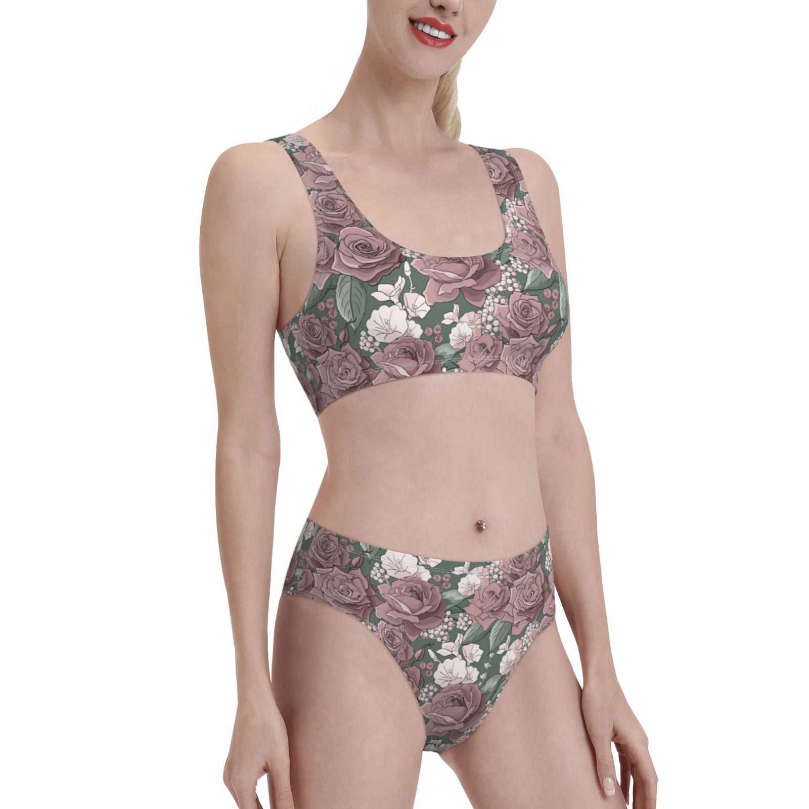 Cauagu Rose Flowers Print Women S Low Rise Bikini Set Two Piece Sporty Swimsuits Summer Beach is a popular picture for sexy and hot.