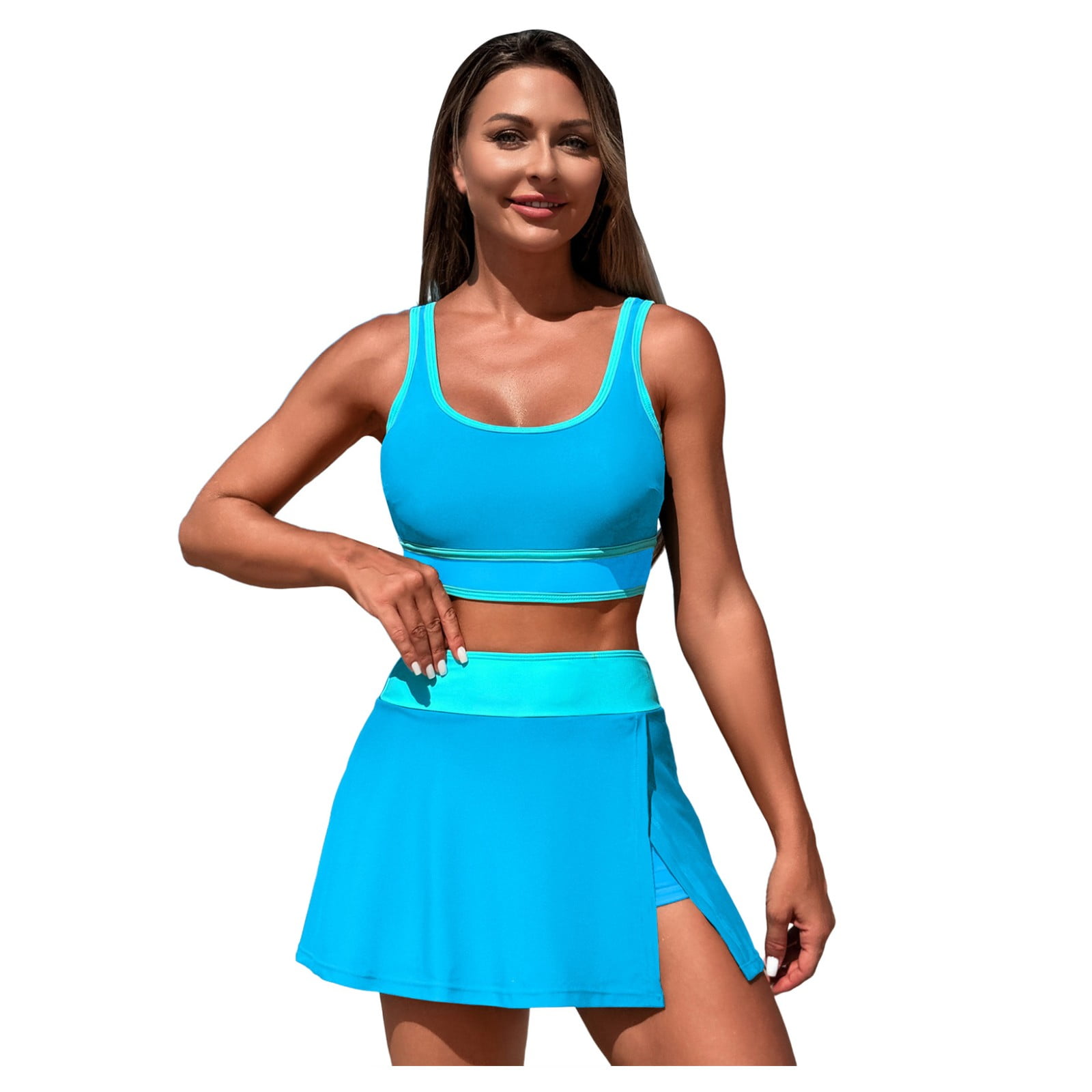 Cbdelite Women S Bikini Sets Tennis Skirt With Shorts Swimsuits Color Block High Cut Bathing is a popular picture for sexy and hot.
