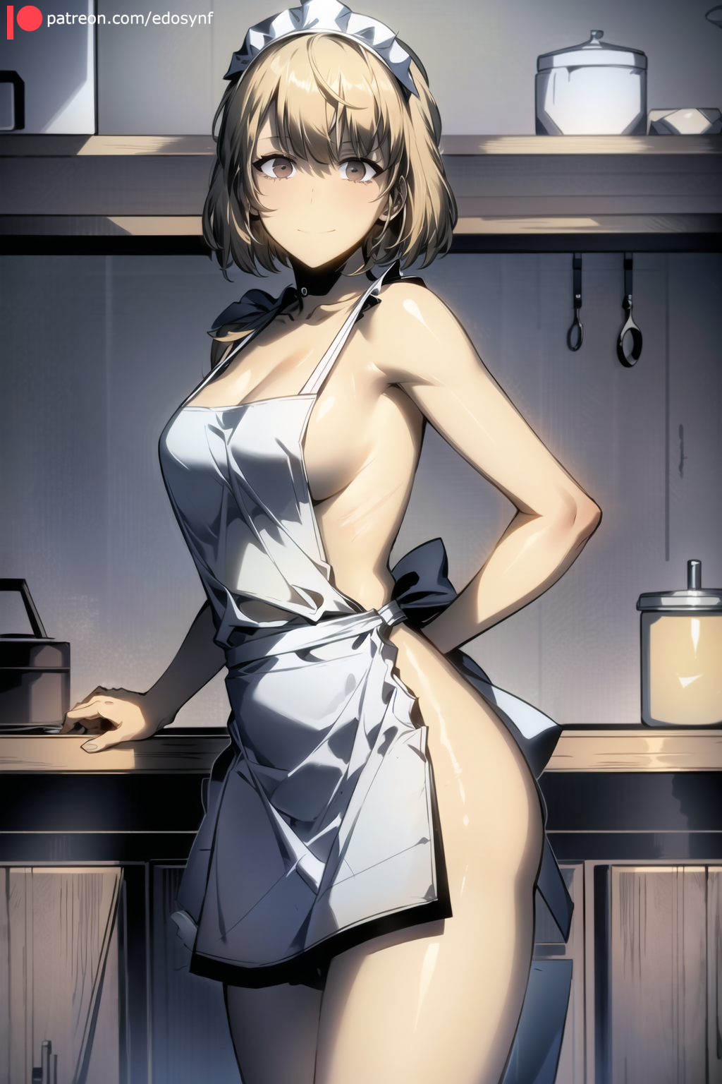 Cha Hae In Solo Leveling Ai Generated Highres 1girl Apron Blonde Hair Brown Eyes Kitchen is a popular picture for sexy and hot.