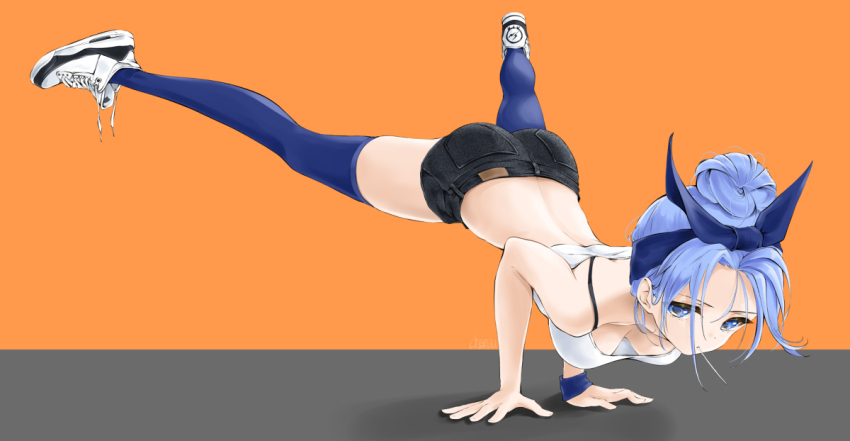 Tag : Chaesu Bae Minah Chaesu Girl Arm Support Ass Back Blue Eyes Blue Hair Blue Thighhighs