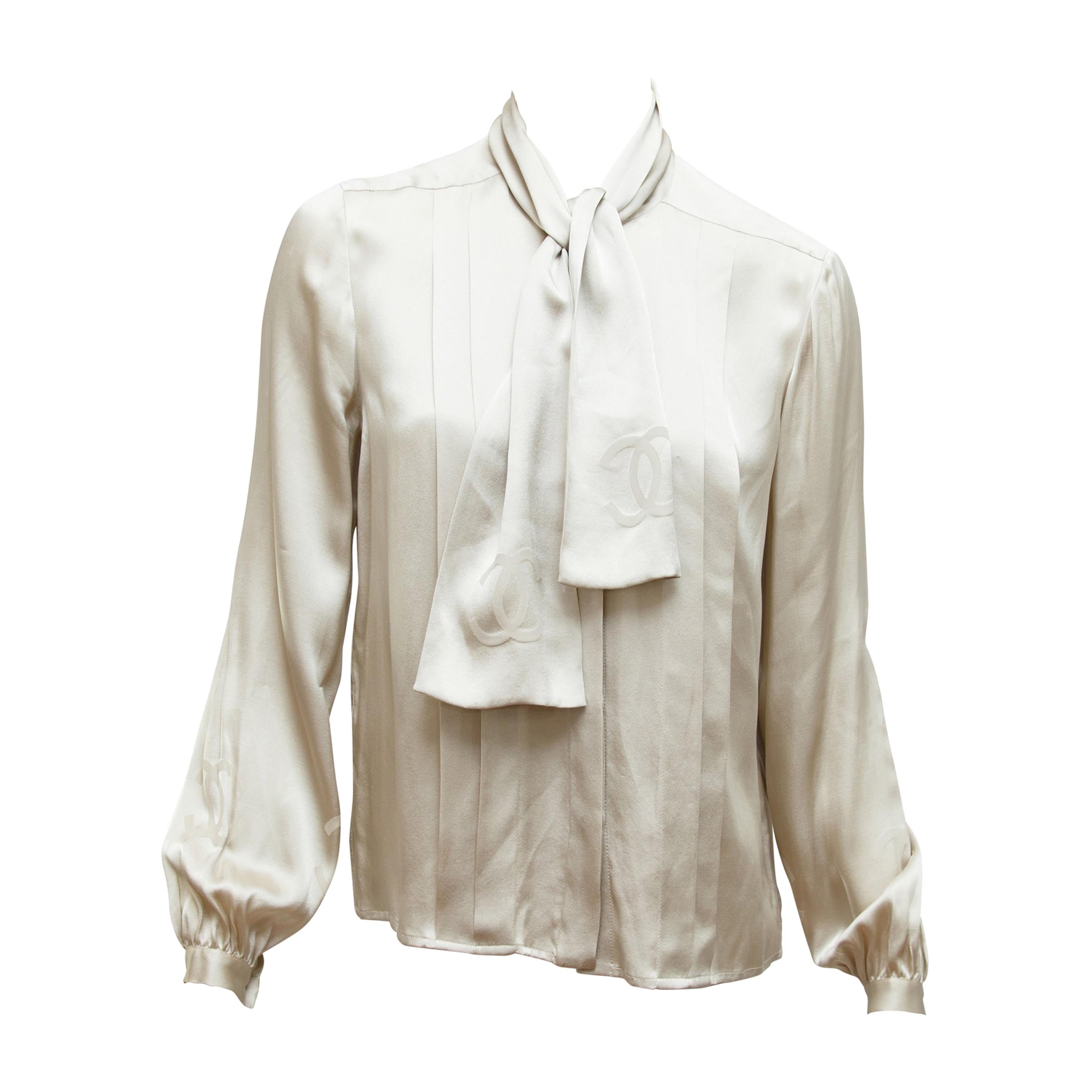 Tag : Chanel Grey Silk Pussy Bow Blouse At Stdibs