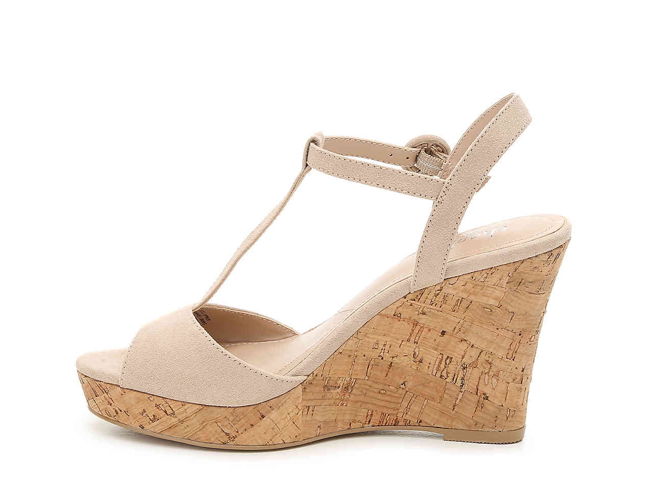 Tag : Charles By Charles David Latin Nude Cork T Strap Open Round Toe Platform Wedge Nude
