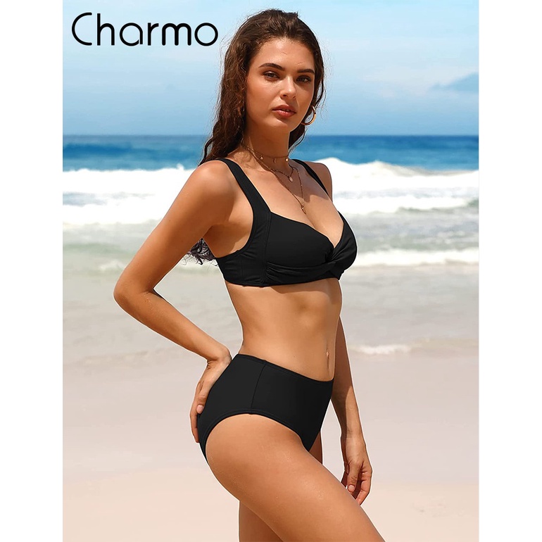 Tag : Charmo Women Twist High Waisted Bikini Swimwear Two Piece Ruched Tummy Control Swimsuit Shopee