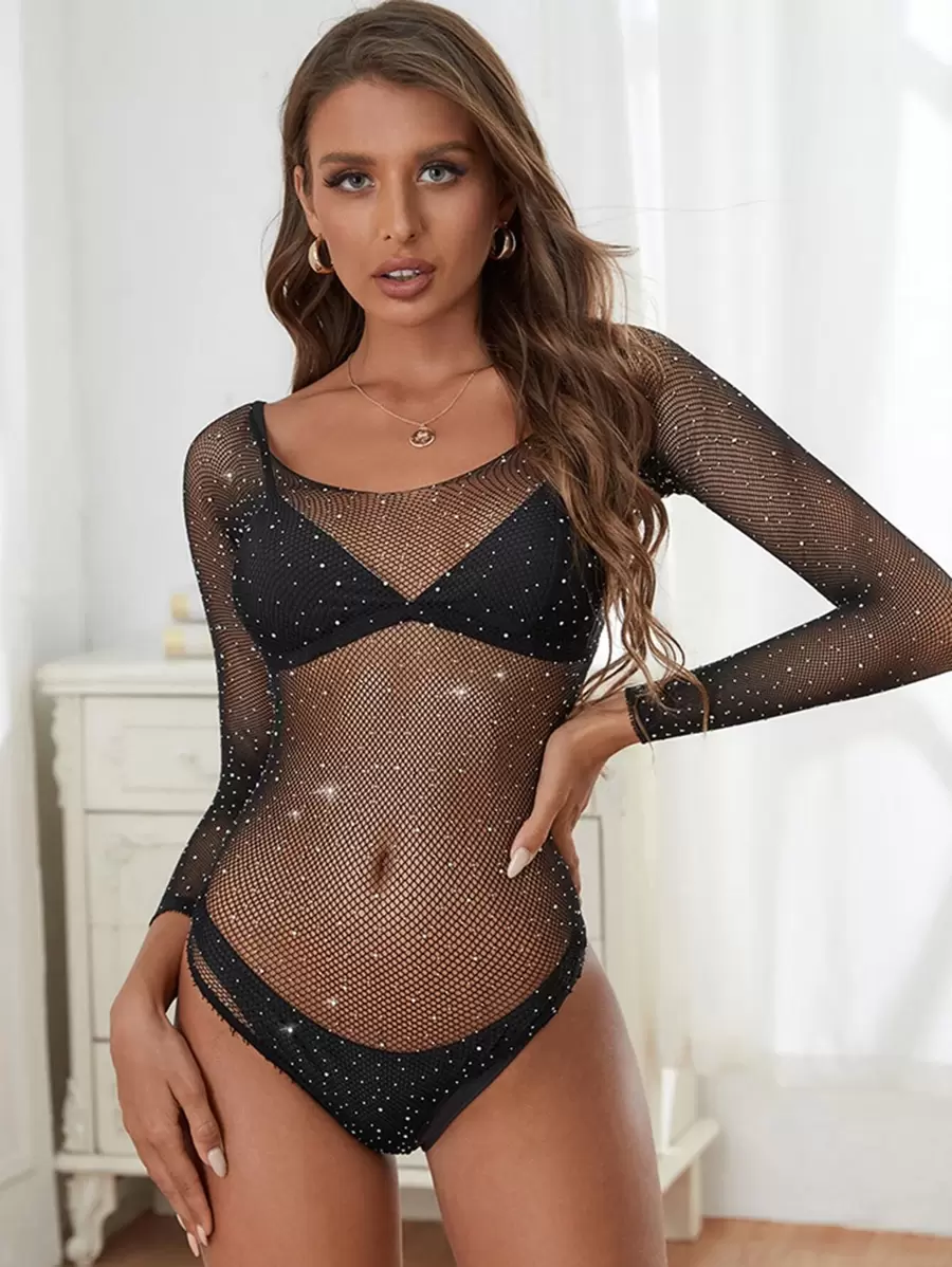 Tag : Chasethenight Rhinestone Studded Fishnet Teddy Bodysuit Lingerie Without Liner Shein Usa