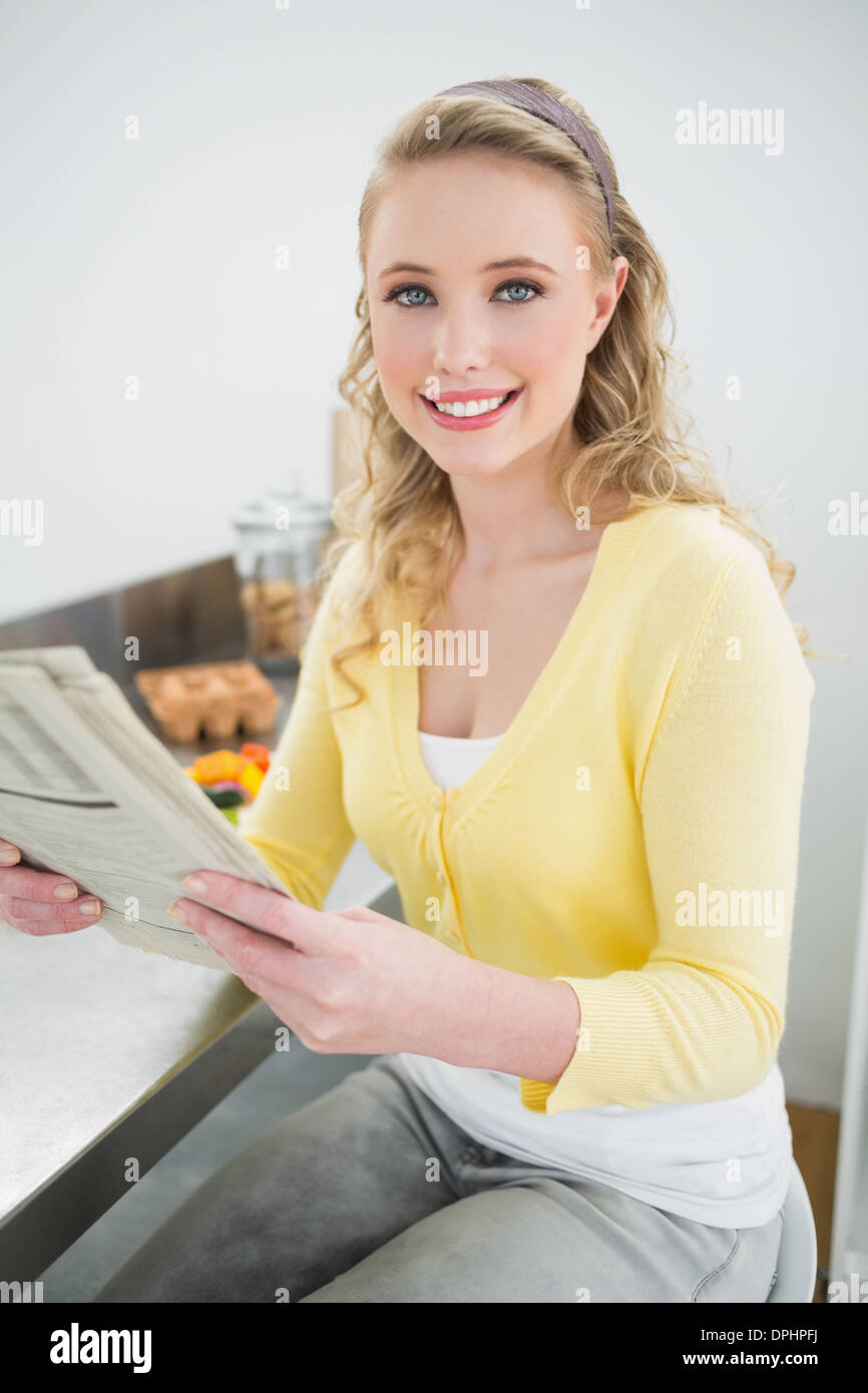 Tag : Cheerful Cute Blonde Holding Newspaper Stock Photo Alamy
