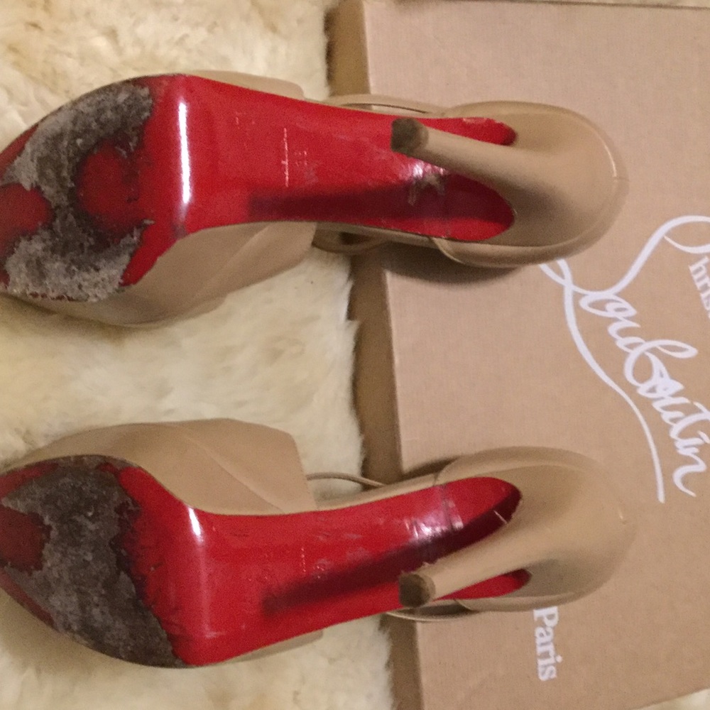 Tag : Christian Louboutin Platform Borghese Pumps Nude Gem