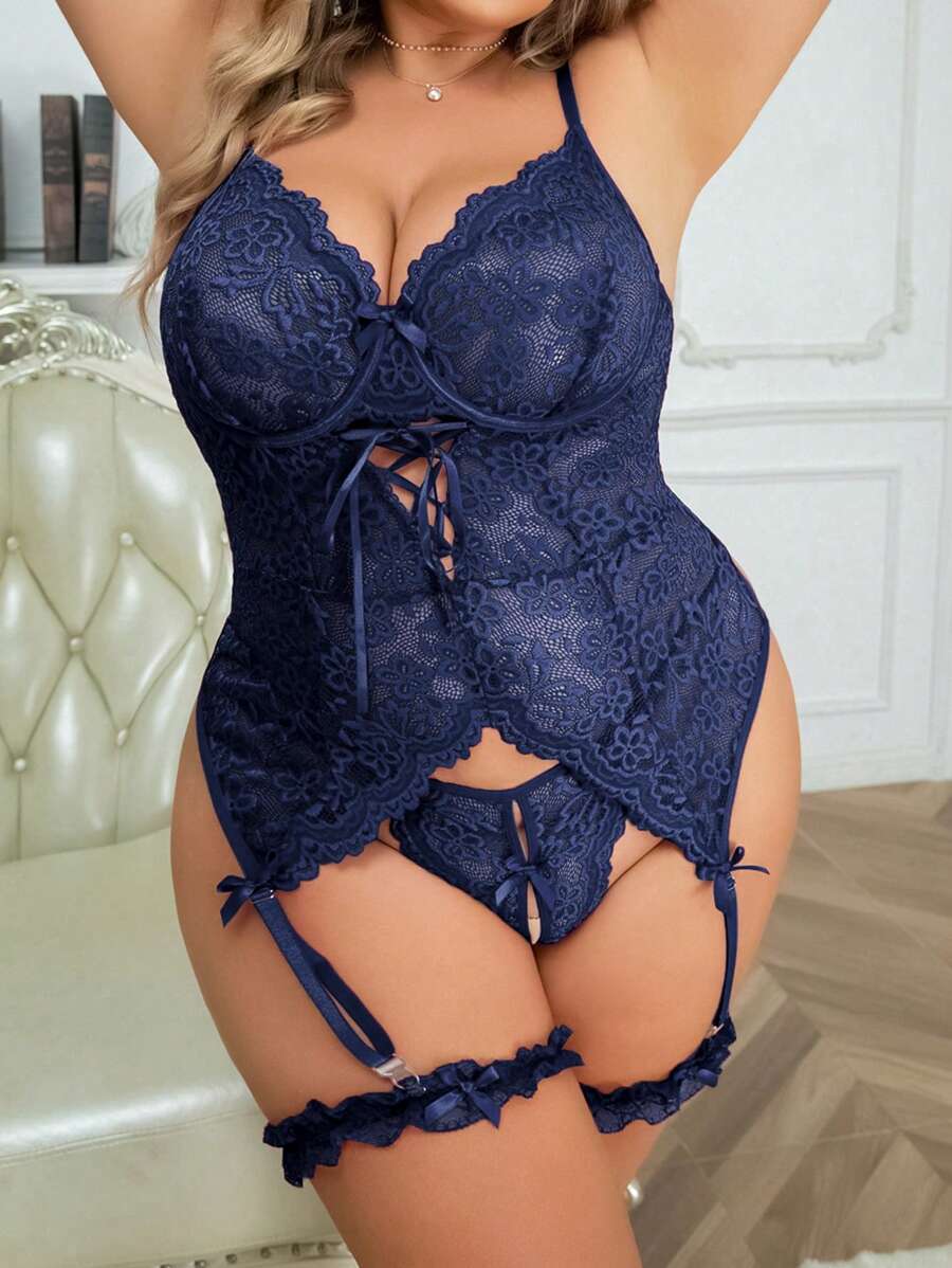 Tag : Classic Sexy Plus Floral Lace Lace Up Garter Lingerie Set Shein Usa