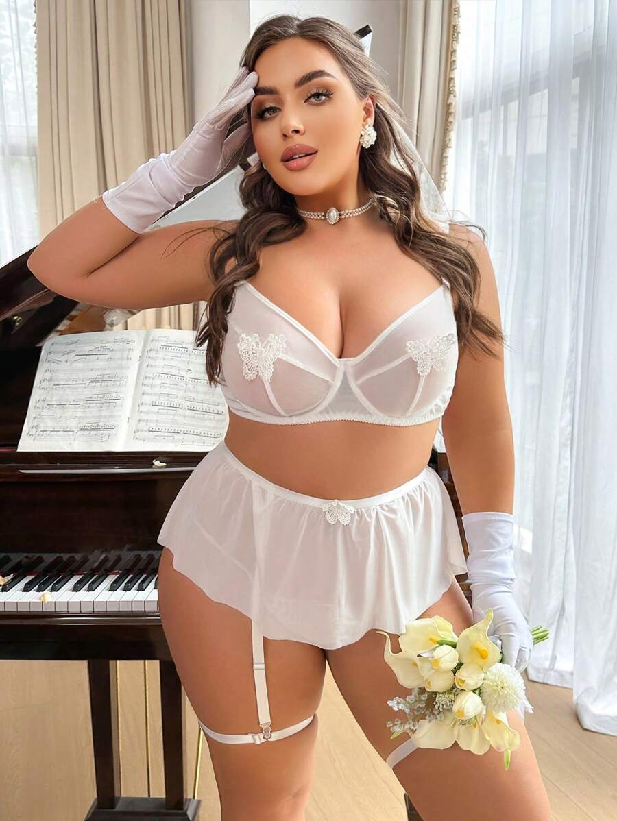 Tag : Classic Sexy Plus Size Sexy Lingerie Set With Underwire And Floral Applique Detailing For