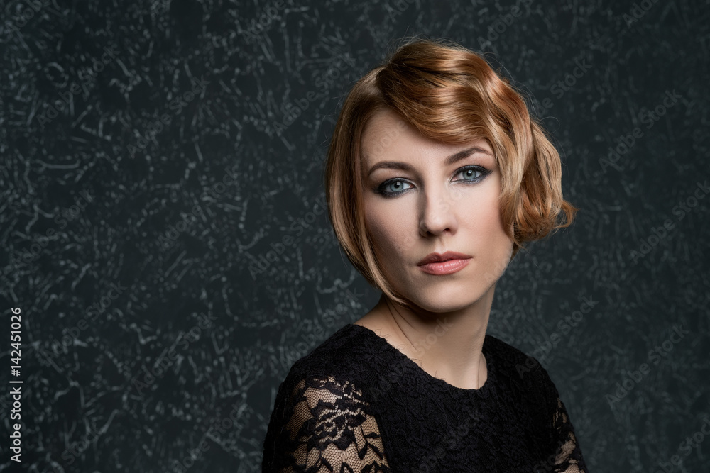 Tag : Classical Portrait Of Elegant Blonde Woman With A Wave Hairstyle And Makeup On Textural