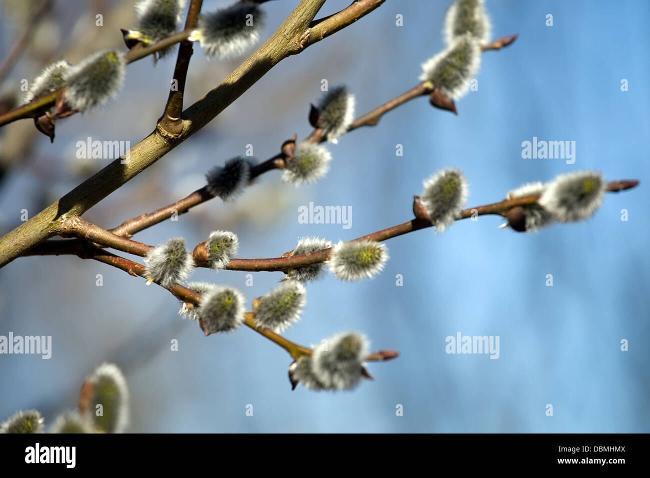 Tag : Closeup Of Pussy Willow Branch With Furry Buds On Blue Sky Background Stock Photo Alamy
