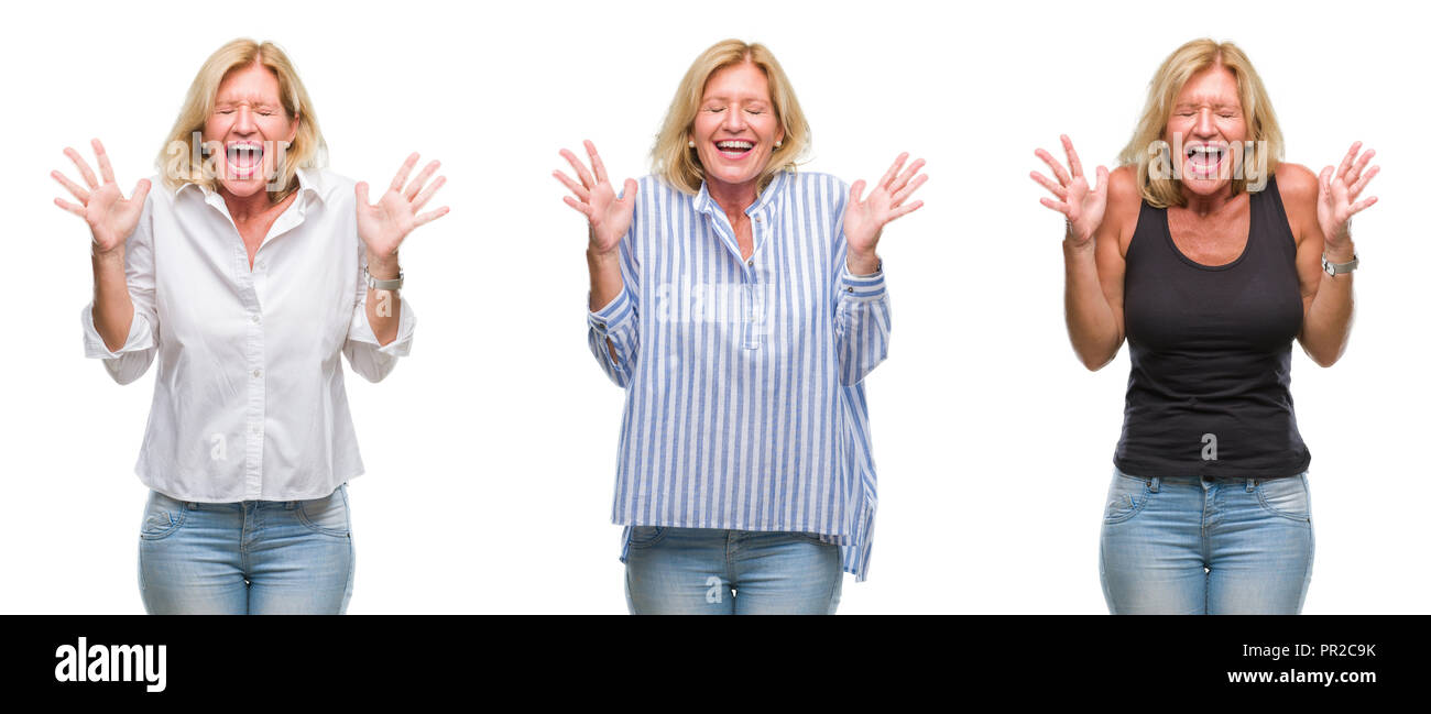 Collage De Belle Femme Blonde D Ge Moyen Sur Fond Blanc Fond Isol Et Fou Fou C L Bre Pour Le is a popular picture for sexy and hot.
