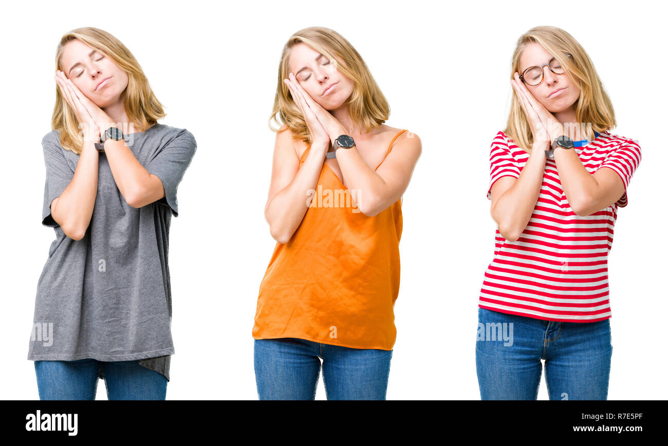 Tag : Collage Of Beautiful Blonde Woman Over White Isolated Background Sleeping Tired Dreaming And