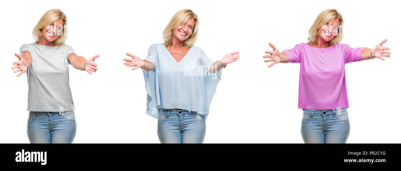 Tag : Collage Of Beautiful Middle Age Blonde Woman Over White Isolated Backgroud Looking At The Camera