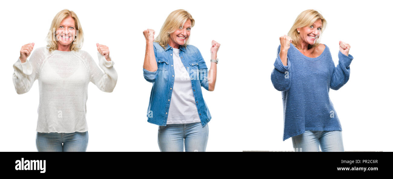 Related pictures for Collage Of Beautiful Middle Age Blonde Woman Over White Isolated Backgroud Very Happy And