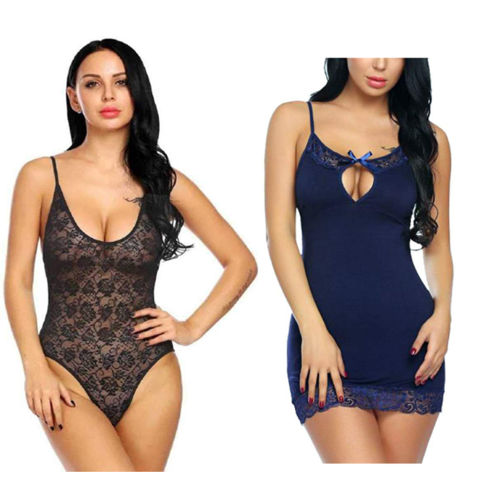 Tag : Combo Set Of Womens Sexy Lace Lingerie Set Nightwear Babydoll And Night