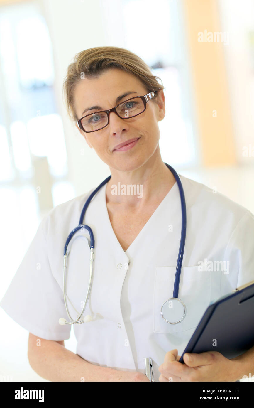 Tag : Confident Mature Nurse Standing In Hospital Corridor Stock Photo Alamy