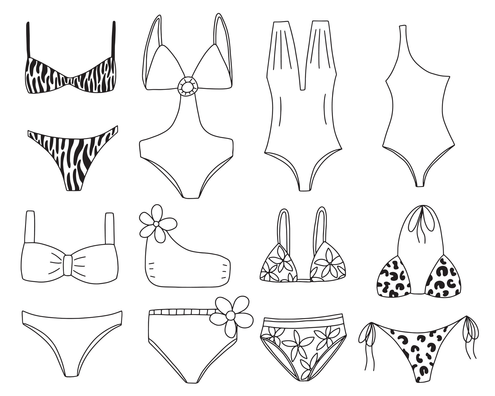 Conjunto De Mano Dibujado Hembra Nadar Trajes Y Bikini Nadando Trajes Bosquejo Conjunto is a popular picture for sexy and hot.