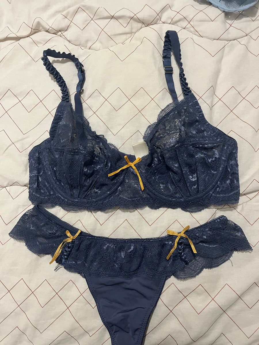 Conjunto Renda Azul Loungerie Lingerie Feminina Loungerie Usado Enjoei is a popular picture for sexy and hot.
