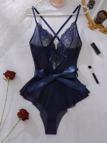 Tag : Contrast Lace Mesh Ruffle Hem Belted Teddy Bodysuit Lingerie Shein Usa
