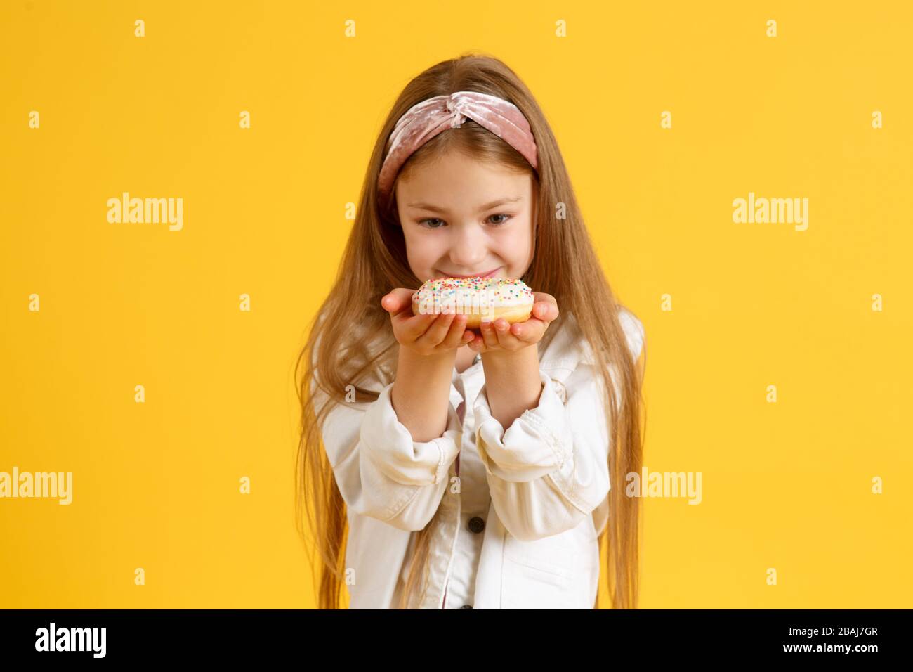 Tag : Crazy Cheerful Blonde Girl In Birthday Hat Smiling Having Fun And Looking Through Two Red