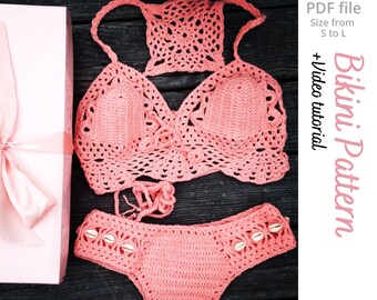 Tag : Crochet Bikini Pdf Pattern With Hidden Elastic Boho Handmade Top With Shells For Summer Vacation