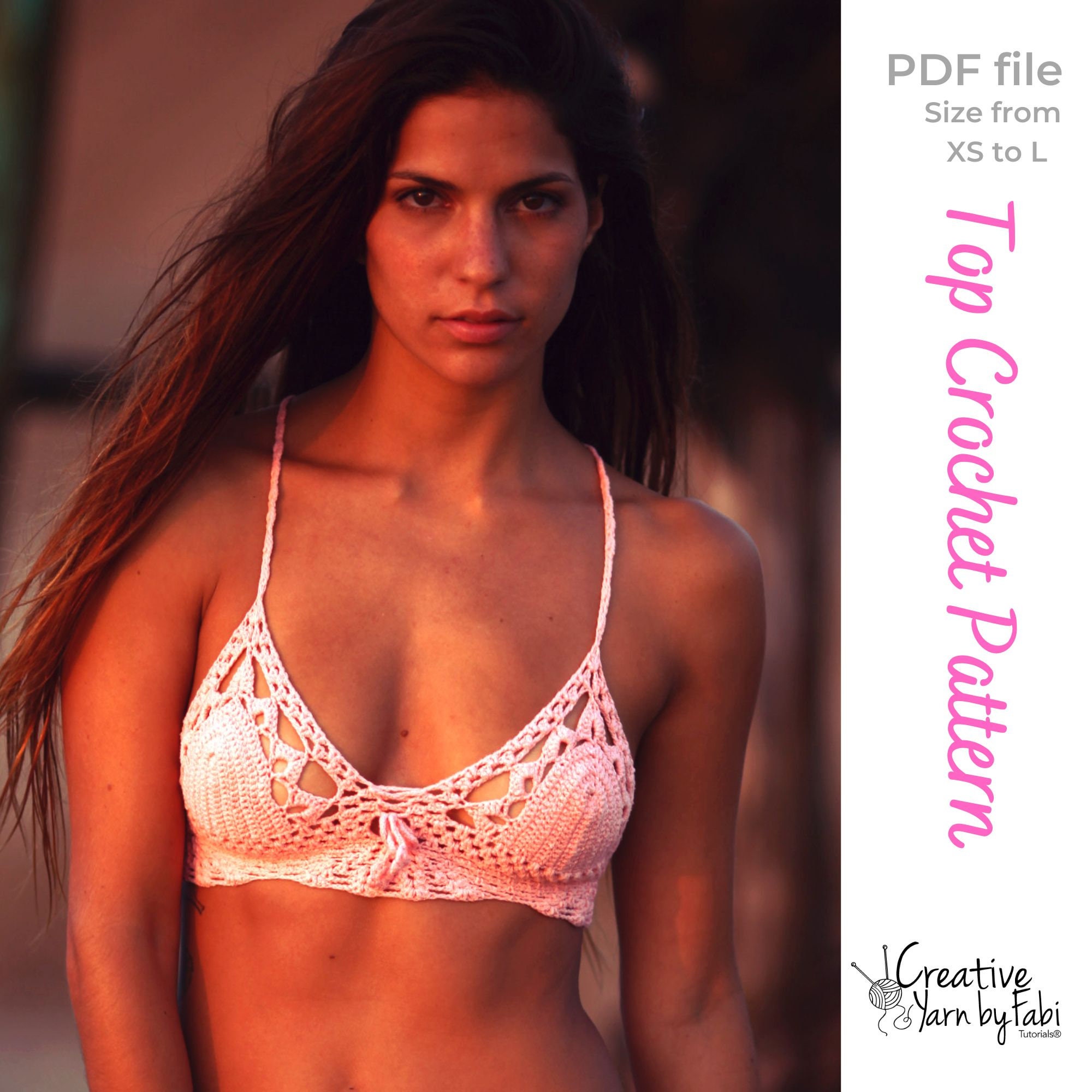 Crochet Bikini Pdf Pattern With Hidden Elastic Boho Handmade Top With Shells For Summer Vacation is a popular picture for sexy and hot.