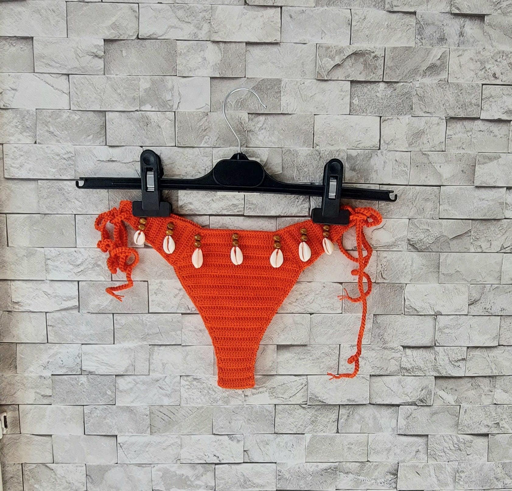 Crochet Bikini Set Orange Bikini Color Sea Shells Bikini Women Swimwear Shell Necklace is a popular picture for sexy and hot.